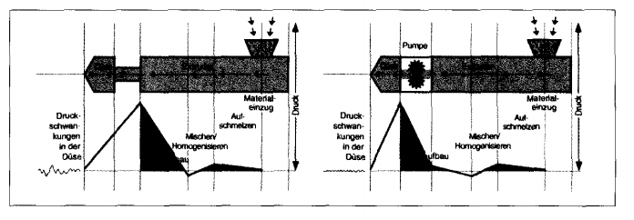 在批量生產(chǎn)時,經(jīng)常需要開、停機(jī)。一般在每次開機(jī)后,熔體壓力及相關(guān)的參數(shù)要達(dá)到正常而穩(wěn)定的數(shù)值通常需要花費很長的時間,也就是說排料期很長。如果在擠出機(jī)中安裝了海科熔體泵,就可以快速地使熔體的相關(guān)參數(shù)值達(dá)到穩(wěn)定狀態(tài),相應(yīng)地也就減少了排料時間,從而節(jié)省了原材料。同樣地,在生產(chǎn)中使用色母粒的情況下,產(chǎn)品換色往往需要很長時間,安裝熔體齒輪泵后,明顯減少了排廢料的時間。